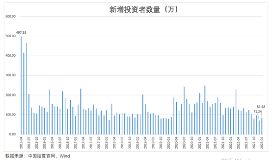数据显示,此前的2022年12月,新增投资者数仅为71.24万,创下2015年4月该项数据开始发布以来的新低。