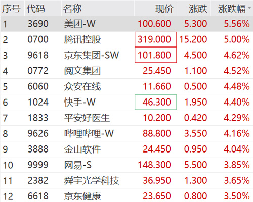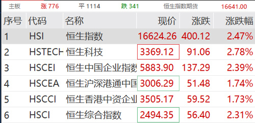 今日港股三大指数集体高开:恒生指数涨1.15%,恒生国企涨1.02%,恒生科技涨1.22%。上午涨幅持续扩大,截至发稿,三大指数均涨超2%,美团、腾讯控股领涨恒生科技。