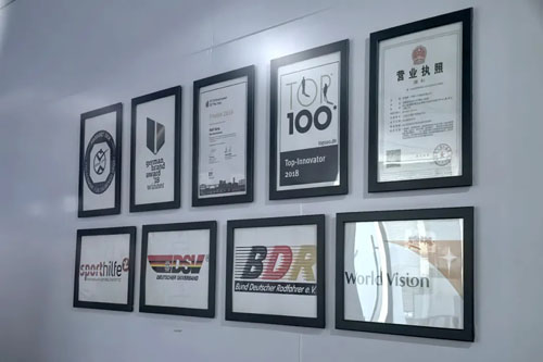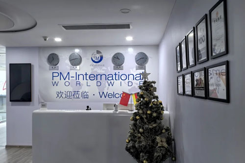 公司前台摆有中国和德国国旗,墙上装饰有德国、中国、美国和新加坡4个时区的时钟,因为实在无聊,患有强迫症的本小点发现德国和美国的时间好像都不太对?墙壁中间有PM国际的标志以及“化繁为简,成功在握”的公司口号,门上也有该内容。右侧墙面摆了一些PM国际的营业执照和荣誉、资质的相框,下面有棵圣诞树,感觉里面空间也不大。