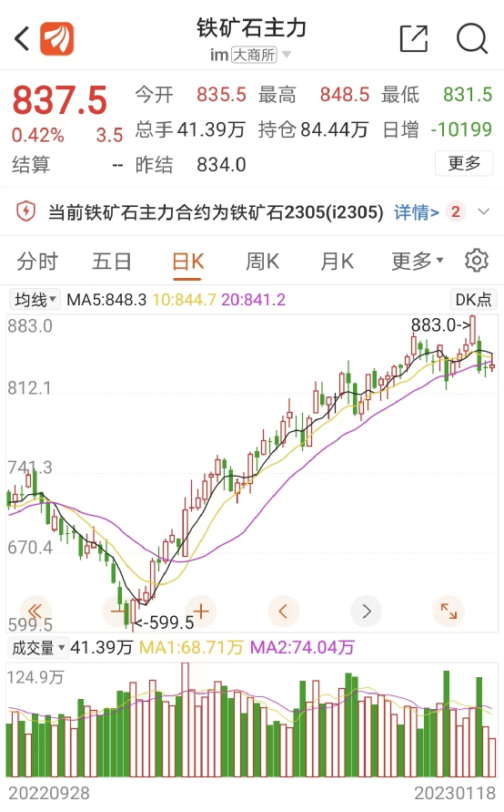 2022年11月以来,大商所铁矿石期货主力合约大涨近50%。