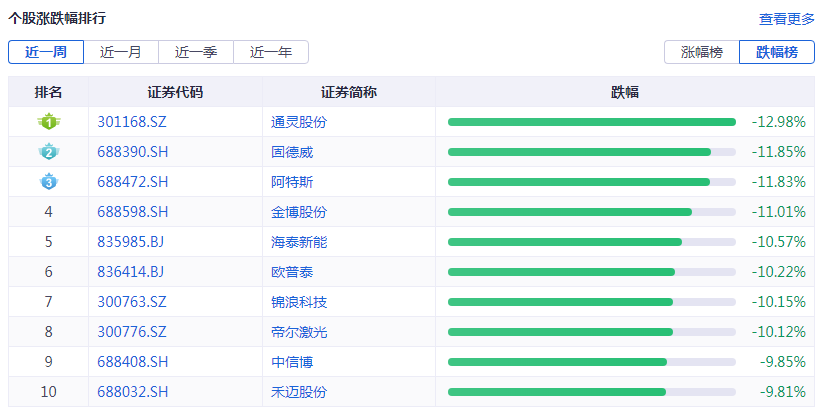 个股涨跌幅