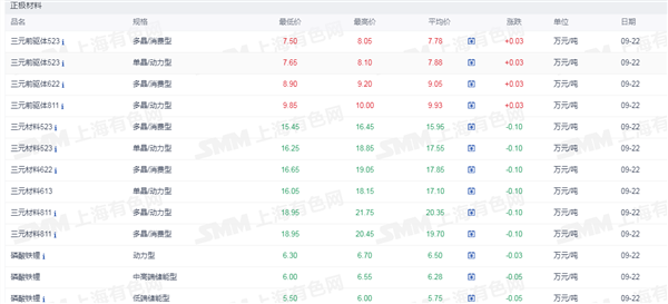 证券之星新能源车行业周报:据上海有色网,截止9月22日,电池级碳酸锂16.5-17.9万元/吨,环比上一工作日下跌1500元/吨;工业级碳酸锂15.5-16.4万元/吨,环比上一工作日下滑1500元/吨。近期随着碳酸锂价格的持续下探,部分锂盐企业制造成本已被击穿,逐步调低开工,产量走低,部分厂家挺价心态渐强,跌幅有所收窄。