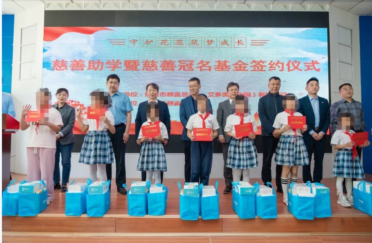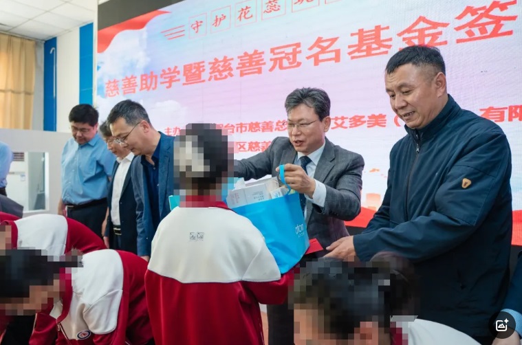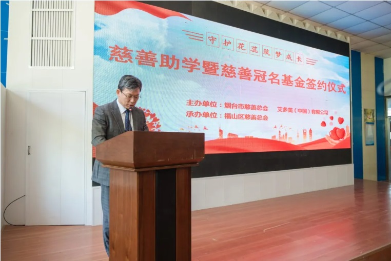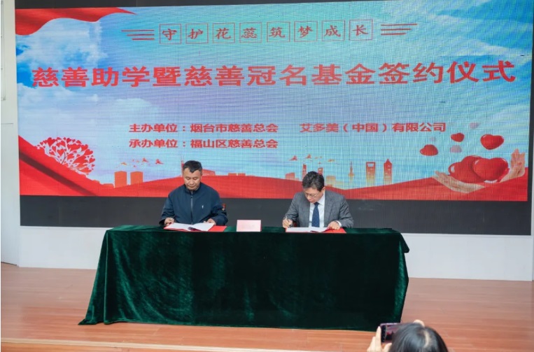 此次捐赠活动由烟台市慈善总会、艾多美(中国)有限公司主办,福山区慈善总会承办的“守护花蕾・筑梦成长”慈善助学暨慈善冠名基金签约仪式在福山区臧家庄中学举办。