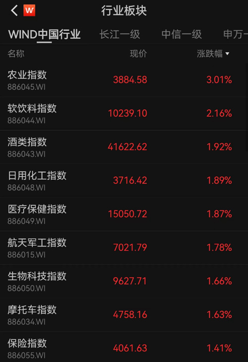 盘面上,上午农业股盘中发力,食品饮料回暖,白酒股涨幅明显;军工板块走高,多股大举涨停。受海外市场影响,光模块、光通信、AI算力等赛道走低,油气开采不振。