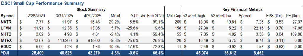 在2025年前五个月里,自然阳光的股价累计上涨了5.5%。自从直销企业股指(DSCI)成立以来,自然阳光已经累计增长了99.1%,是所有小型股票中增长最多的,也是DSCI成员股中增幅第二大的公司。