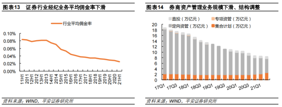 纵观券商几大业务:经纪业务方面,交易额受市场行情、股价波动等影响较大;同时,2015年以来,互联网展业快速发展、行业价格竞争加剧,传统经纪业务佣金率走低、盈利能力萎缩且波动大。