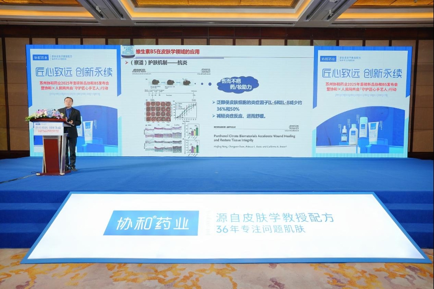 也有不少品牌选择到上海发新品。苏州协和药业就举办了 “匠心致远 创新永续” 2025品牌发布会,协和 B5 系列新品首次亮相,包含协和维生素原 B5 精华液、协和维生素原 B5 舒缓精华乳等。如果把协和维E乳看成是苏州协和药业在转化医学上的历史成绩,与之呼应,协和B5产品就是深耕问题肌肤的新答卷。