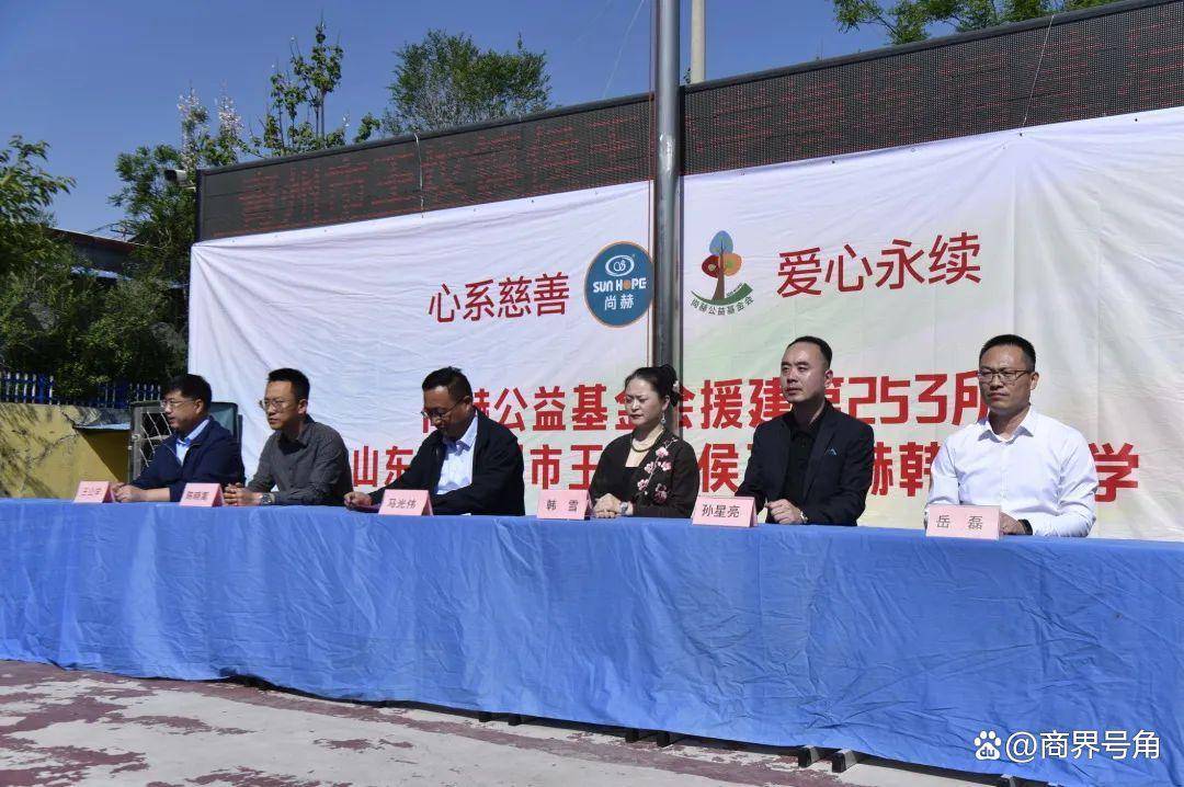 2025年4月27日,金色的阳光倾洒在青州市王坟镇侯王小学的每一寸土地,为这座隐匿于青山间的校园披上了一层温暖的光芒。在青州市委教育工委委员马光伟,王坟镇党建办公室副主任陈晓嵩,王坟学区主任王公学,侯王小学校长的共同见证下,尚赫爱心大使韩雪、孙星亮伉俪携众多尚赫爱心人士齐聚于此,与侯王小学全体师生共同迎来了尚赫公益基金会援建的第 253 所公益学校揭牌仪式。