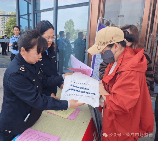 5月15日是全国打击和防范经济犯罪宣传日,为进一步加大打击传销工作力度,营造和谐稳定的社会环境,荣成市市场监管局以此为契机在九龙城商圈开展打击传销普法宣传活动,深刻揭露传销活动的违法本质和严重危害,增强群众识别、抵制传销的意识和能力,营造全社会共同参与打击传销的良好氛围。