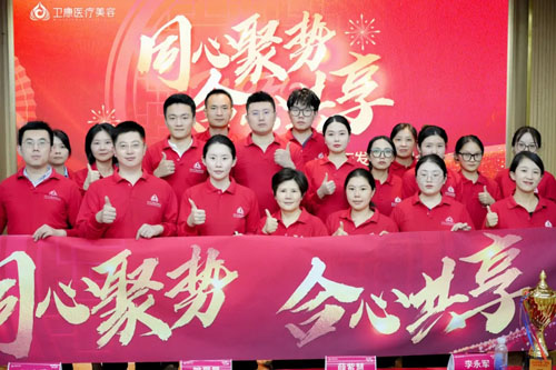 2025年7月9日,卫康医美集团“同心聚势·合心共享”2025年中表彰大会暨下半年发展计划会在临沂与苏州双会场同步举行。大会以表彰致敬奋斗者,以战略擘画新蓝图。卫康集团董事长王宗继、卫康生物集团常务副总裁刘中伟、蒙山康谷生命医养中心副总经理刘凯宁出席本次会议共同见证荣耀时刻。卫康医美集团董事长朱凤兰携临沂微整医疗美容医院、临沂卫康医疗美容及苏州卫康全员身着“卫康红”战袍,以昂扬姿态共赴这场荣耀之约。