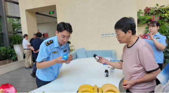 讲解者语言生动有趣、通俗易懂,现场参加活动的护理院居住老人及附近社区居民们听得津津有味,大家积极互动、沟通交流。活动现场播放《保健食品是否可以代替药物治疗疾病》《老年人如何选购保健食品》科普短视频,设置咨询台,发放保健食品消费提示宣传册并解答消费者疑问。