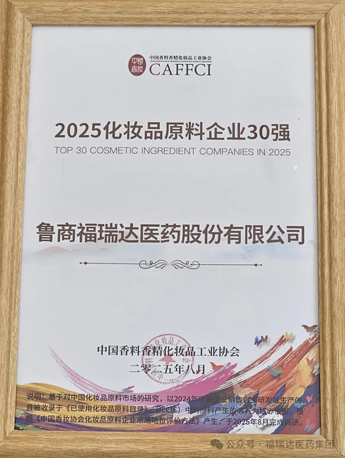 2025年8月22日,在中国化妆品原料创新大会暨北京 “未来美城” 发展大会上,福瑞达凭借在科技创新与产业生态构建领域的卓越表现,成功入选中国香料香精原料企业 30 强。这一荣誉不仅印证了福瑞达作为中国透明质酸产业缔造者与领跑者的地位,更标志着其在合成生物学等前沿领域的新突破。