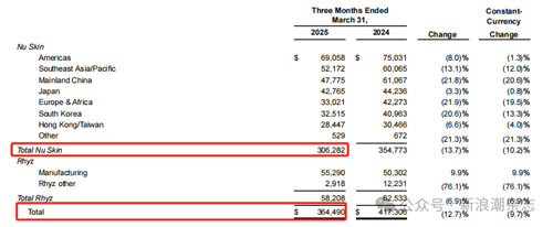 仔细研读财报数据可以发现,如新全球客户数量为77.6万,同比下降11%;付费经销商13.1万,减少15%;销售领袖3.1万,缩减20%。这些核心指标的全面下滑,清晰地反映出传统直销模式面临的系统性挑战。特别是在主要市场,如新核心业务Nu Skin营收下滑13.7%,从去年同期的3.547亿美元降至3.062亿美元。